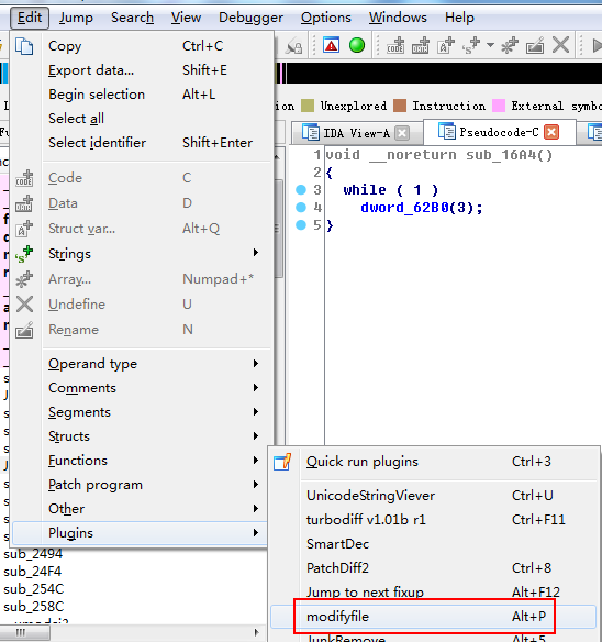 最後我們點擊”Edit->Plugins->modifyfile”,然後就可以保存新的so文件了。我們將這個so文件覆蓋原apk中的so文件,然後再重新簽名。