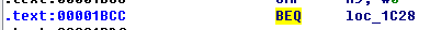 比如說00001BCC: BEQ loc_1C28對應的匯編代碼為”15 00 00 0A”。
