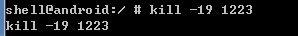 2 然後用kill -19 [pid] 就可以將這個app掛起了。