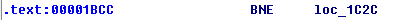 接下來我們想修改匯編代碼為00001BCC: BNE loc_1C2C。只需要將”0A”變成”1A”,將”15”變成”16”即可。