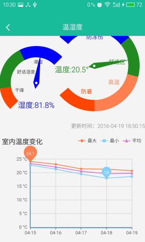 2、查看室內實時溫濕度和溫濕度趨勢。