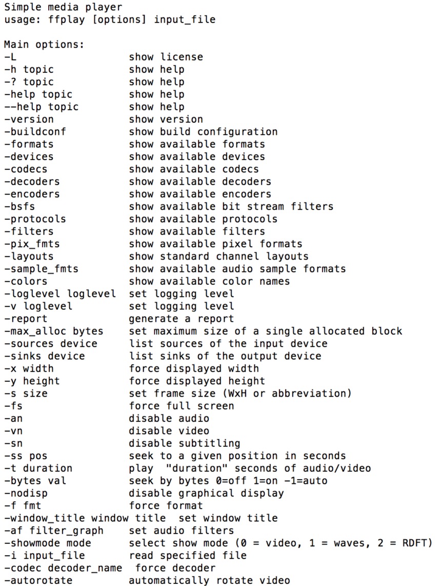 FFmpeg使用手冊 - ffplay 的常用命令在編譯FFmpeg源代碼時,如果系統中包含了SDL-1.2版本時,會默認將ffplay編譯生成出來,如果不包含SDL-1