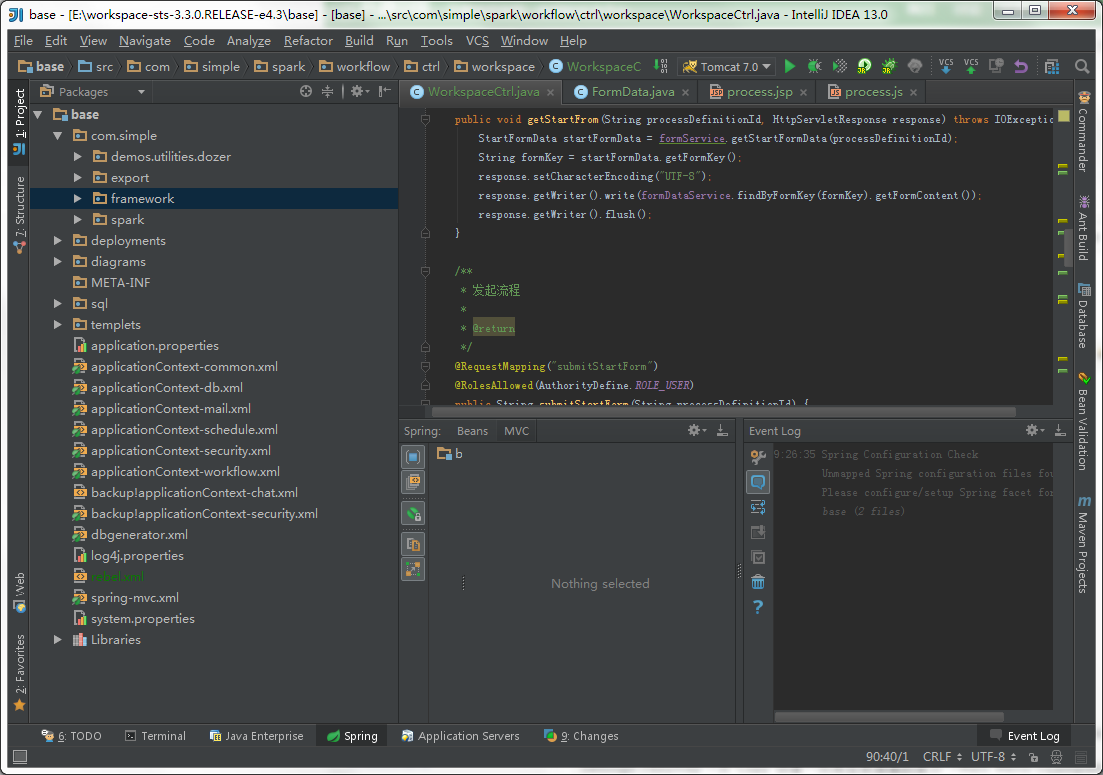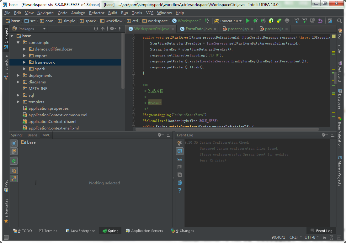 用圖說明會輕松一些,第一張圖中的左側Projects面板小的可憐,在大項目中很難完整關注整個項目路徑,Idea在布局上比Eclipse差太多不夠靈活,不能直接拖動改布局,一直以為Idea這個不能調整,突然玩了一下Idea的配置,發現了調整的方法,效果看第二張圖: