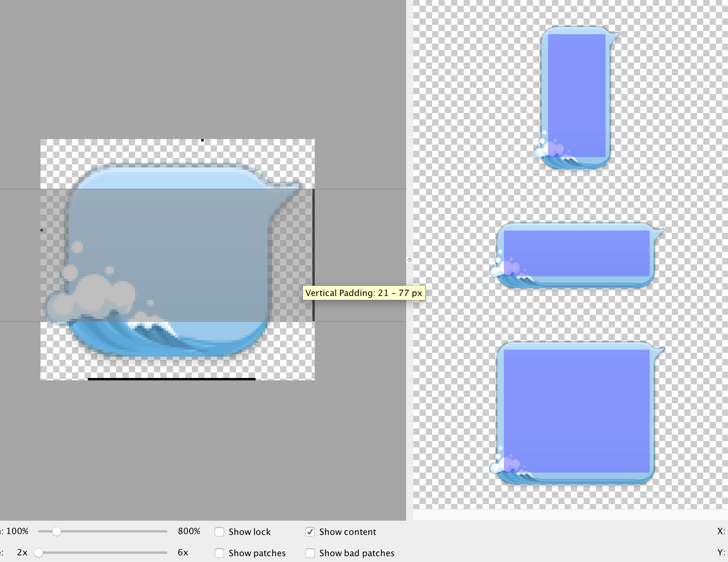 3.左邊一般也是1個像素點,根據這個點上下拉伸,如右邊畫紅線的2張圖片就是拉伸的局域。