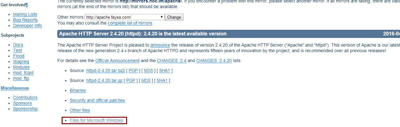 3.點擊Files for Microsoft windows之後,進入如下頁面。找到ApacheHaus.