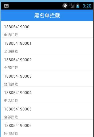 先把要攔截的電話號碼保存到數據庫中,攔截模式用個字段區分,1 電話攔截,2 短信攔截,3全部攔截