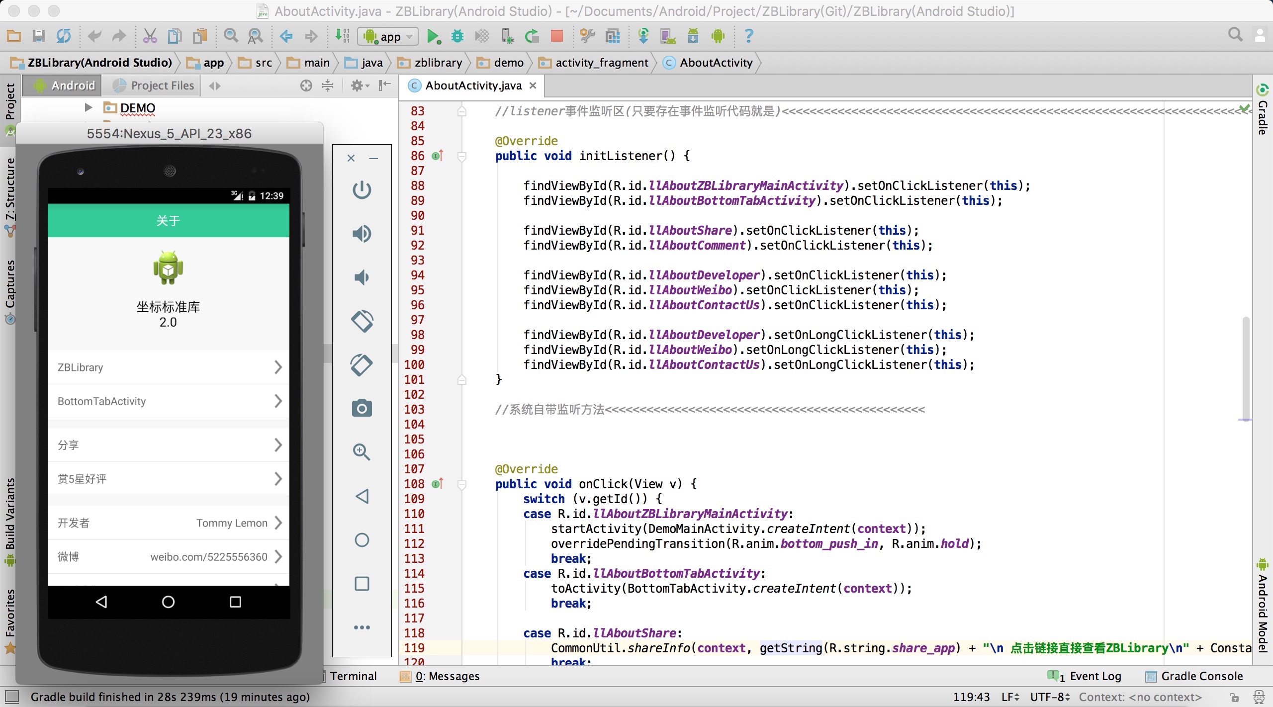 坐標標准庫ZBLibrary,是一個MVP架構的Android快速開發框架,提供一套開發標准(UI,Data,Listener)以及模板和工具類並規范代碼。