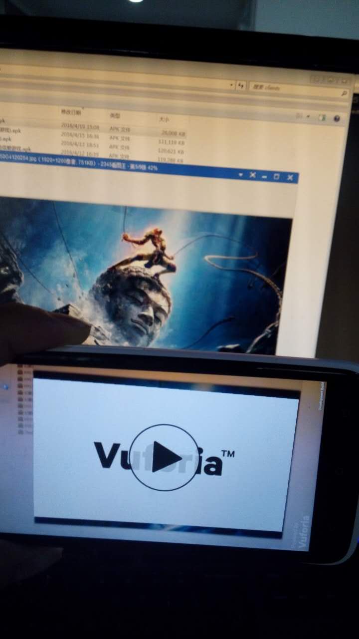 6.完成上述所有操作,打出apk包,然後用手機對著識別所以的圖片,可以看到視頻播放組件顯示出來: