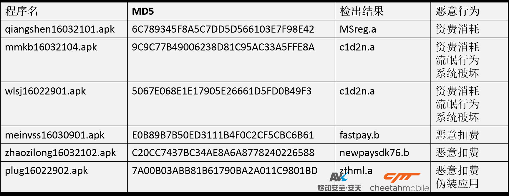 針對“僵屍之手“系列惡意軟件,AVL Pro和獵豹安全大師已經實現全面查殺。安天AVL移動安全和獵豹移動安全實驗室提醒您: