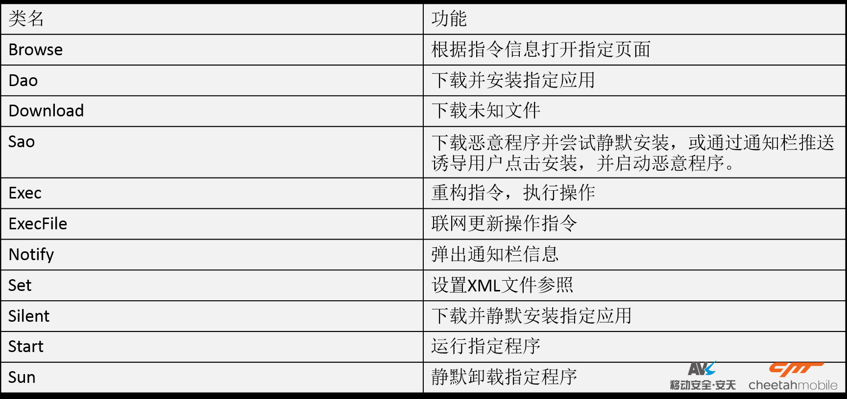 經過分析,安天AVL移動安全和獵豹移動安全實驗室總結“僵屍之手“惡意軟件有如下行為特征: