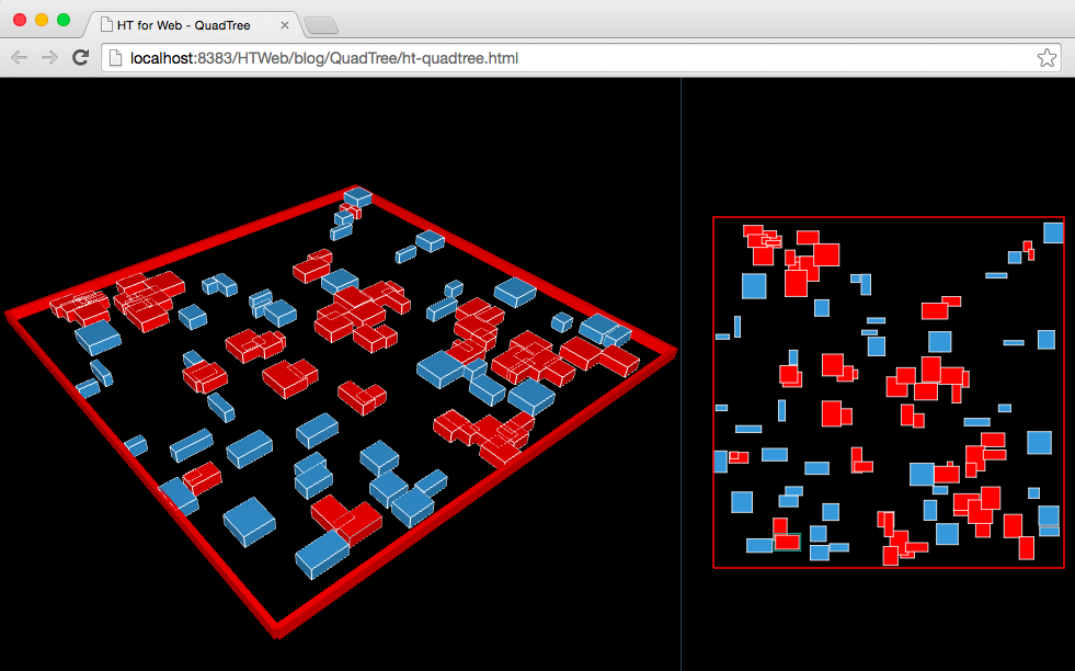 HTML5實現3D和2D可視化QuadTree四叉樹碰撞檢測