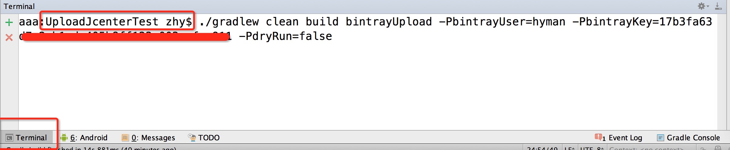 user就是用戶名,key就是我們剛才的讓你保存的key,dryRun是一個配置參數,當為true的時候,會運行所有的環節,但是不會上傳。