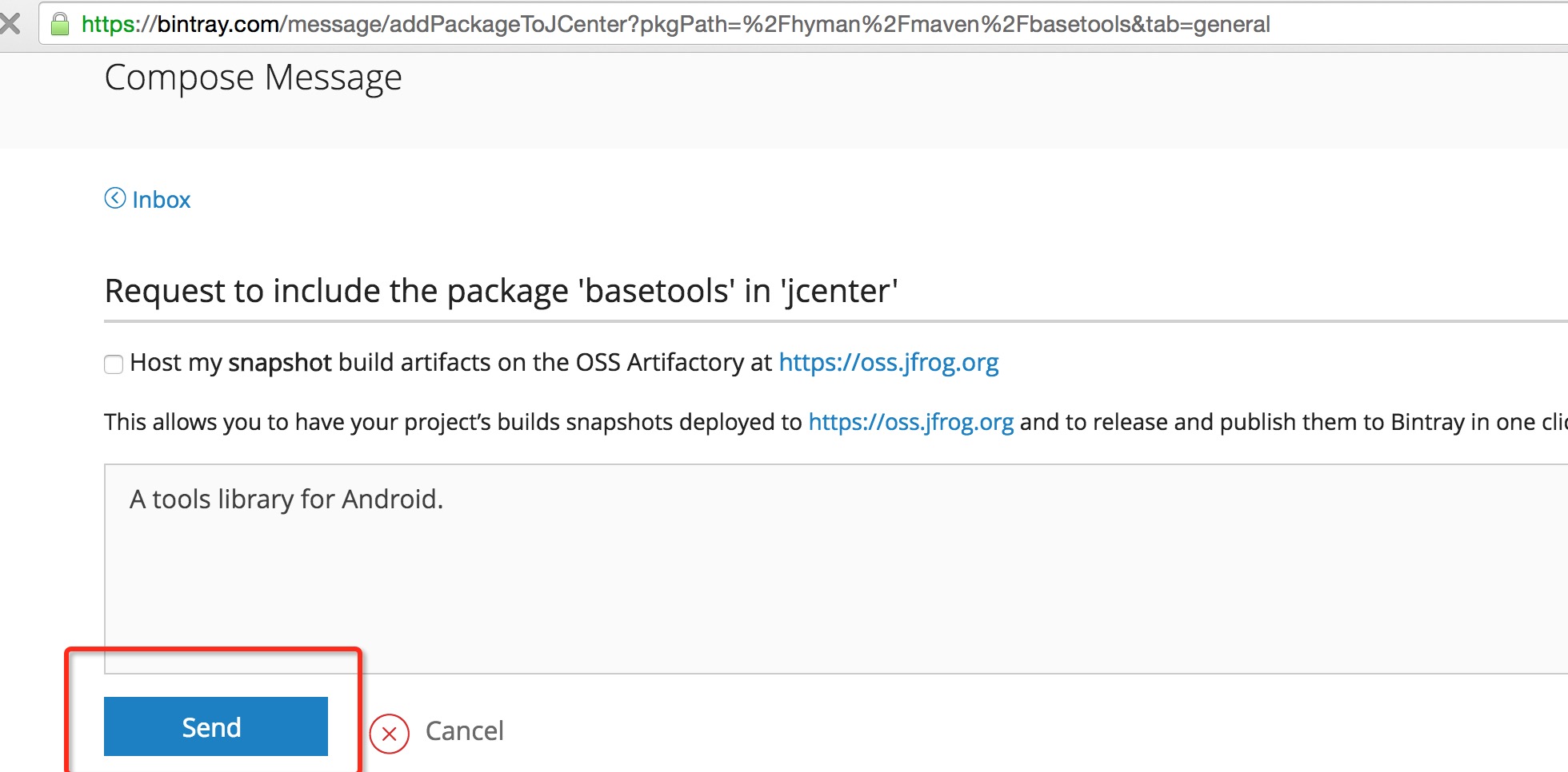 然後隨便寫一下對你該庫的描述,然後點擊發送就可以了。