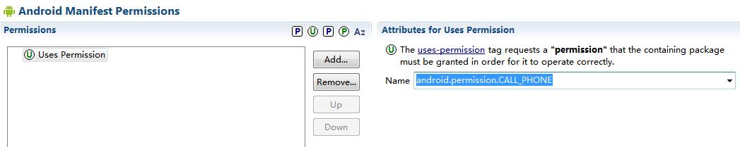 右邊下拉單選擇:android.permission.CALL_PHONE