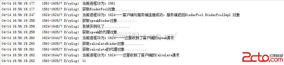 Log.d("cylog", "當前進程ID為:"+pid+"----"+"這裡收到了客戶端的Calculate請求");