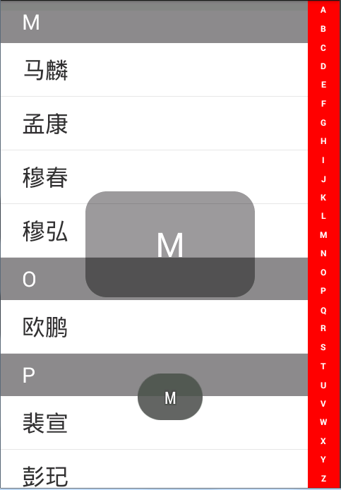 快速索引,索引如下是快速索引的效果圖,是從網上下的實例。如圖實現的難點1:是最右側的索引是用自定義View來實現的,主要通過onDraw的方法將其畫出; 難點2:是如何拿