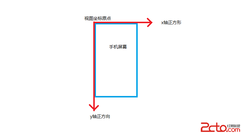 由上圖我們可以知道,Android視圖坐標的原點在屏幕的左上方,x軸正方向是向右,y軸正方向是向下。