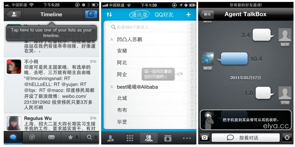 從做到右依次是Tweetbot、QQ通訊錄和Talkbox