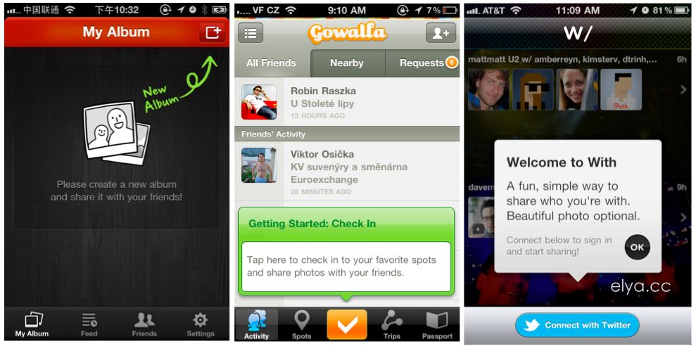 從左到右依次是Albumphoto、Gowalla和With。