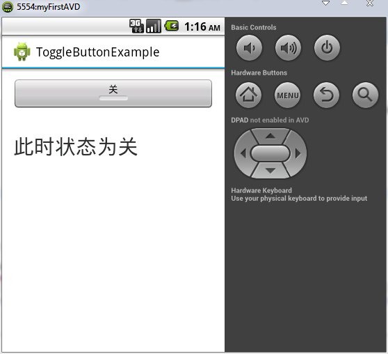 下面舉一個簡單的例子來說明ToggleButton的使用方法