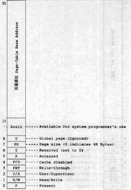 頁尺寸是4KB,頁表每個表項占4字節,CR3寄存器給出了頁目錄的物理基地址;頁目錄給出了所有頁表的物理地址,而每個頁表給出了它所包含的頁的物理地址。