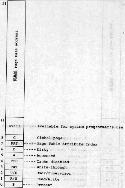 頁目錄表的表項簡稱PDE,頁表的表項簡稱PTE。分頁機制是否生效的開關位於cr0的最高位PG位。如果PG=1,則分頁機制生效。
