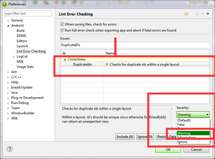 2.點擊android中的Link Error Checking