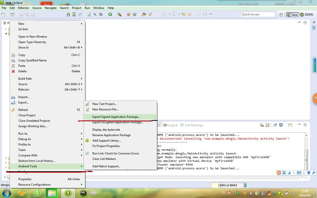1.在要打包的項目上右擊打開Android Tools,然後打開Export Android Application並且輸入項目名稱