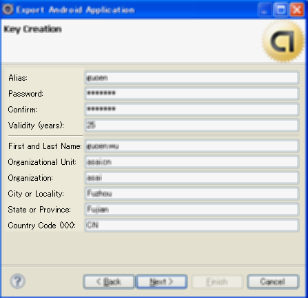 3.點擊下一步,完成簽名的別名,密碼等,可以看到明顯有一個分割線,分割線下的City and Locality必須填,剩余的可以不填
