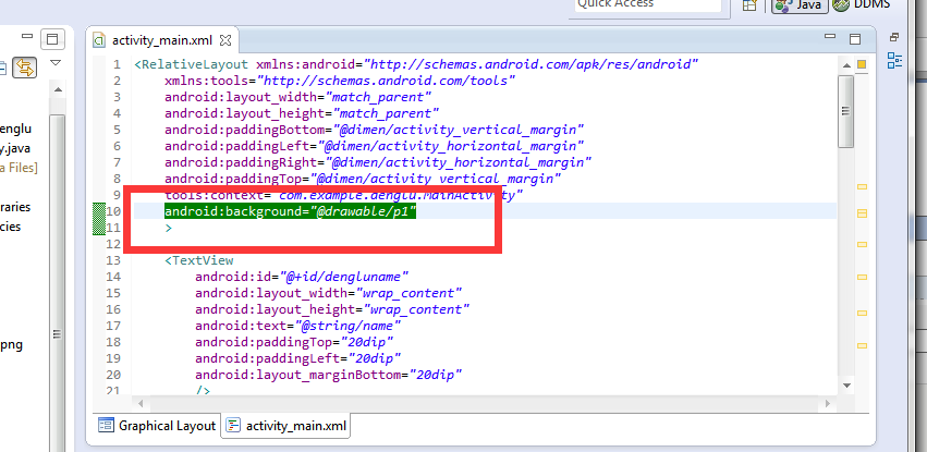 3.打開布局文件(res文件夾下的layout文件夾下的xml文件)在布局中寫入下面的代碼