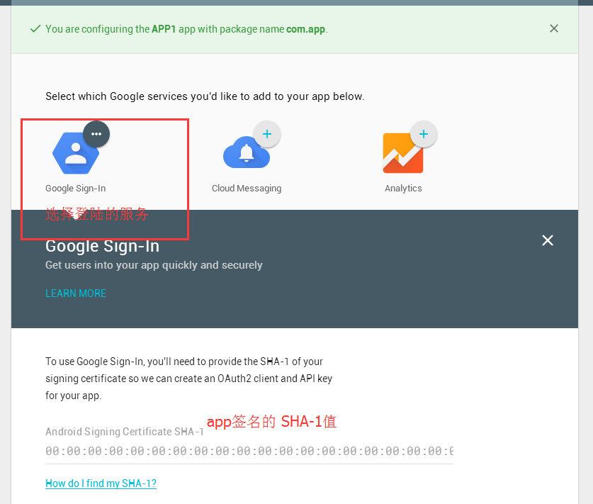 https://developers.google.com/mobile/add?platform=android&cntapi=signin&cntapp=Default%20Demo%20App&cntpkg=com.google.samples.quickstart.signin&cnturl=https:%2F%2Fdevelopers.google.com%2Fidentity%2Fsign-in%2Fandroid%2Fstart%3Fconfigured%3Dtrue&cntlbl=Continue%20with%20Try%20Sign-In