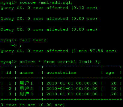 然後我在 /mnt底下創建了add.sql (方便後面使用)代碼如下: