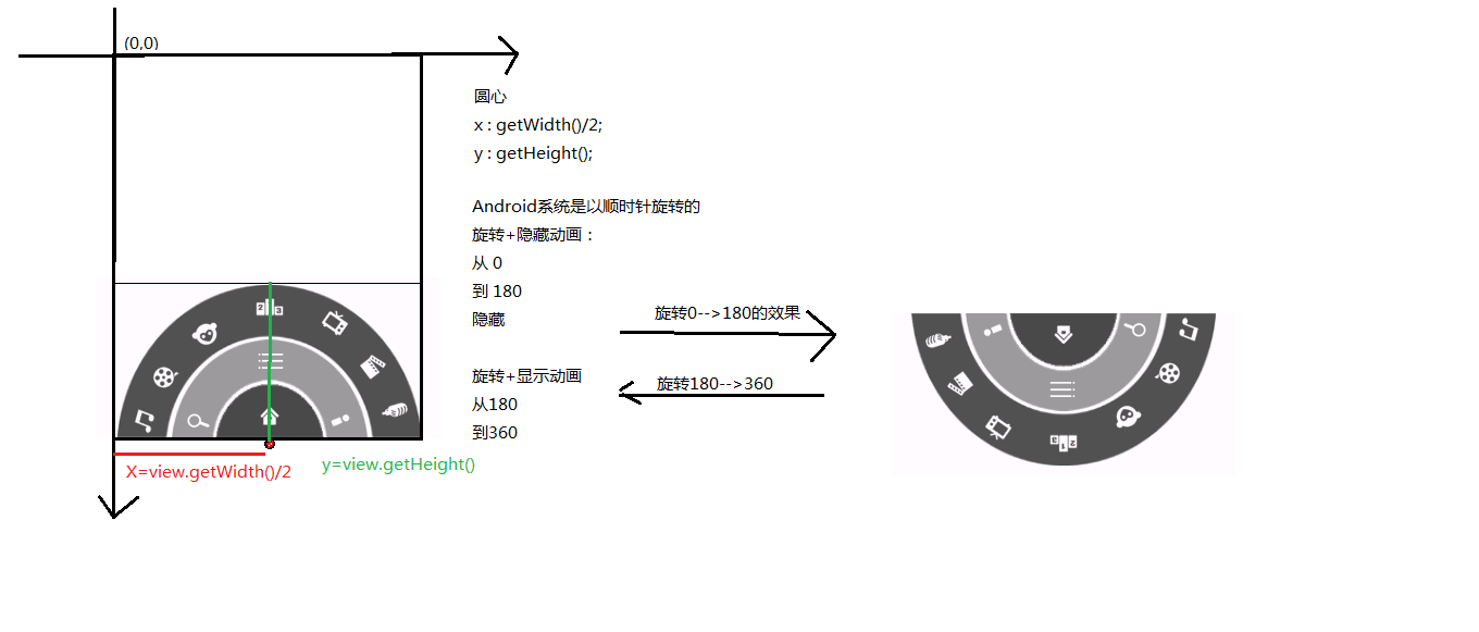 運行演示做好的優酷菜單效果,並且講解實現思路;因為現在優酷已經更換界面,引用此界面主要為講解自定義控件實現的思想。