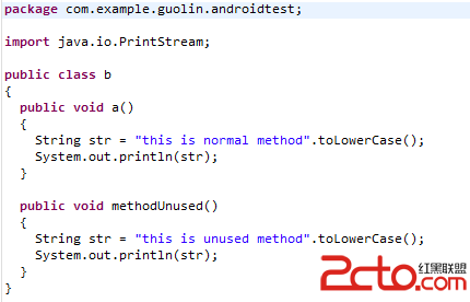 這是一個非常普通的工具類,沒有任何繼承關系。Utils中有兩個方法methodNormal()和methodUnused(),它們的內部邏輯都是一樣的,唯一的據別是稍後methodNormal()方法會被調用,而methodUnused()方法不會被調用。