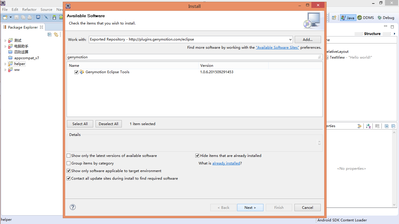 1.在安裝genymotion之後,打開eclipse,如下圖操作: