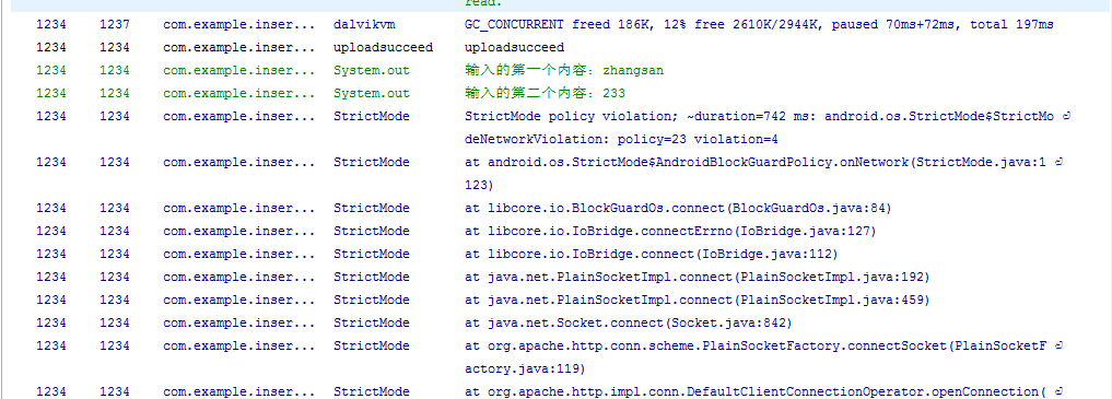 如果在執行程序的過程中Logcat中出現下面情況,就差不多對了。