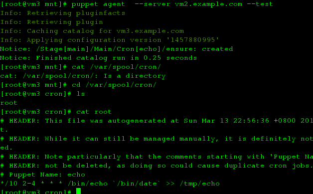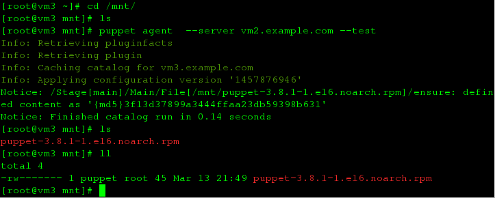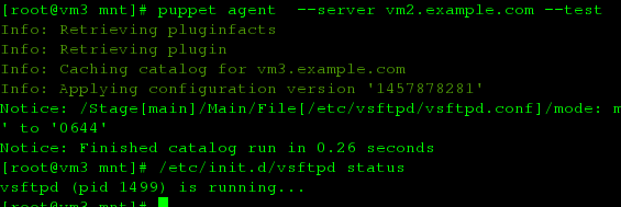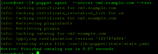 puppet agent --server vm2.example.com --test