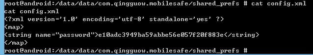 [android] 手機衛士保存密碼時進行md5加密,androidmd5一般的手機沒有root權限,進不去data/data目錄,當手機刷機了後,擁有root權限,就可