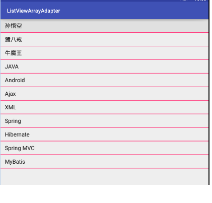 lv.setAdapter(new ArrayAdapter<String>(MainActivity.this,android.R.layout.simple_list_item_1,items));