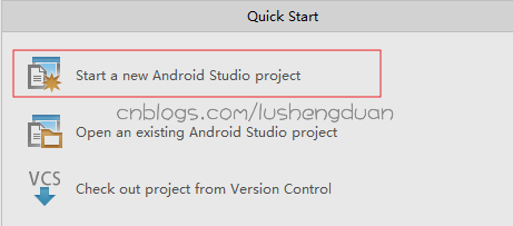 打開Android Studio,我們選擇“Start a new Android Studio project”