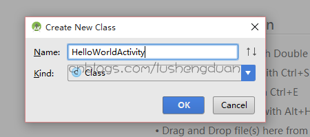 點擊“OK”後,在HelloWorldActivity類中輸入以下代碼