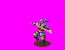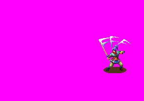 如圖所示一張png中存放了人物所有的幀動畫,播放動畫的時候程序需要計算出將要播放的圖片在原始圖片中的起始坐標和結束坐標,也就是說要從原始圖片中把將要播放的圖片扣出來,從而顯示在手機屏幕上。這種資源的排列方式程序需要編寫計算圖片坐標位置的算法。