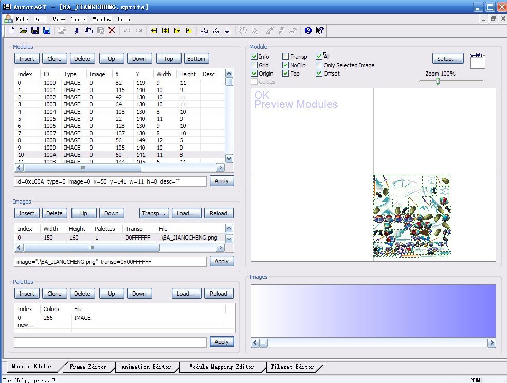 動畫編輯器生成出來的其實就是坐標 告訴圖片的每一個點 每個動畫的點 拼接起來的每一個坐標 程序須要編輯對動畫編輯器生成的xml文件 根據生成出來的坐標 進行解析然後繪制出游戲動畫。AuroraGT動畫編輯器是筆者使用最多的一款動畫編輯器它的功能非常強大可以編出任意動畫。由於考慮到商業用途 對於這個編輯器的解析與使用我不做任何解釋 。如果只是單純的想學習我把編輯器的下載地址貼出來,大家可以互相研究互相討論互相學習。