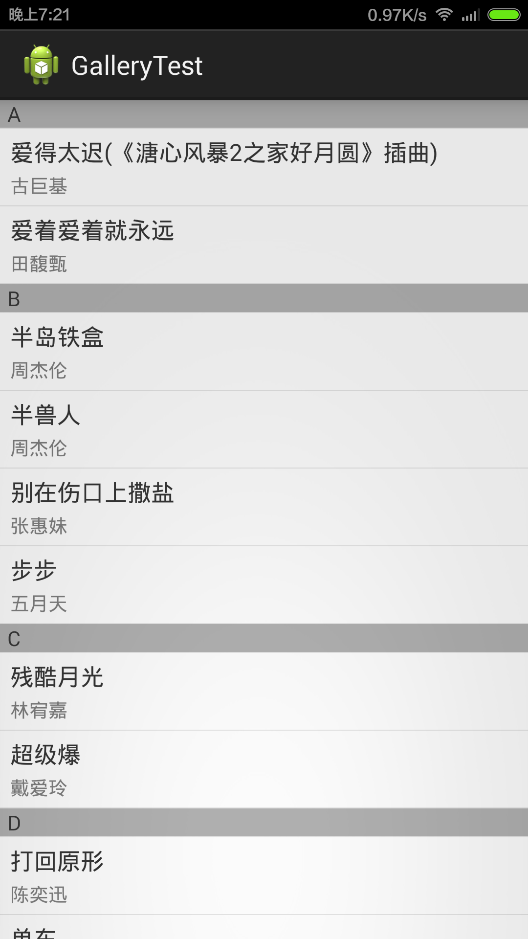 ListView分欄--制作分欄音樂列表,listview分欄--列表之前我遇到過這樣的需求,要求在ListView中按時間對數據分欄,當時的做法是在每個ListView