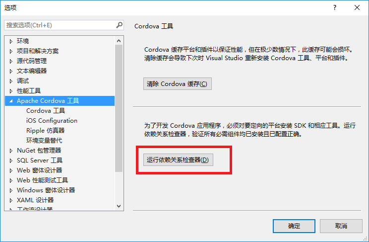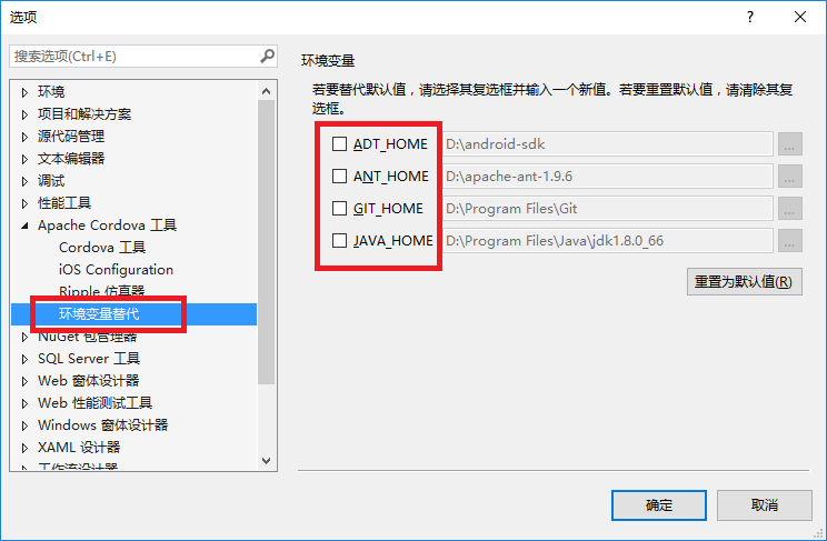 很多天之前就安裝了visual studio community 2015,今天閒著麼事想試一下Apache Cordova,用它來開發跨平台App。在這之前需要配置N多東西,這裡找到了一篇MS官方文章:配置 Visual Studio Tools for Apache Cordova。看著這片文章開始一個個安裝,nodejs、chrome、Git、Apache Ant、Oracle Java、Android SDK等,然後又是配置環境變量。最後呢,我們可以使用VS自帶的檢測工具來檢測一下依賴環境是否正確安裝和查看環境變量設置,如下圖: