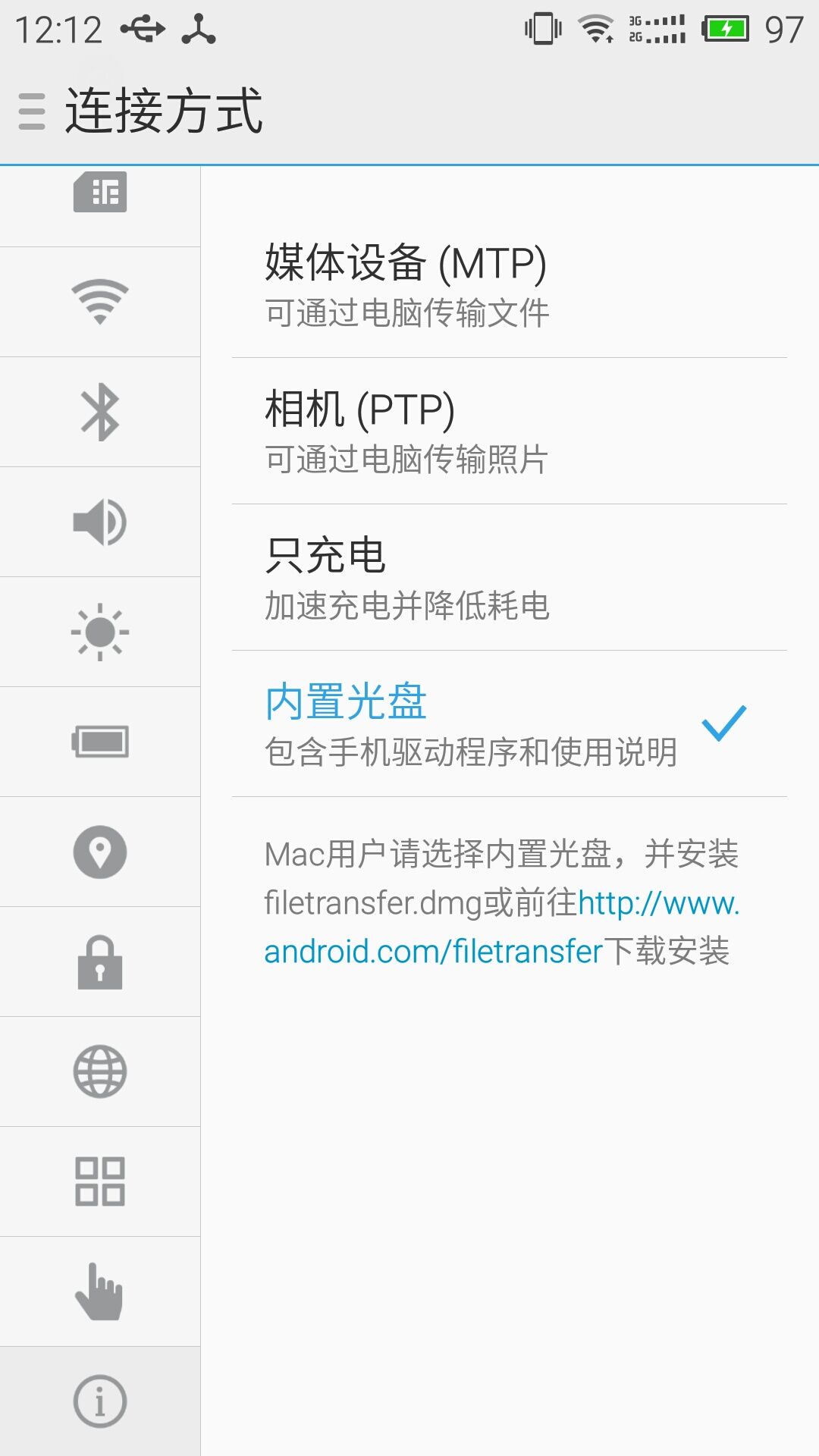 還有就是在說說adb_usb.ini這個文件。魅藍note2在連接電腦的時候有一個這樣的選項“內置光盤”,如下圖: