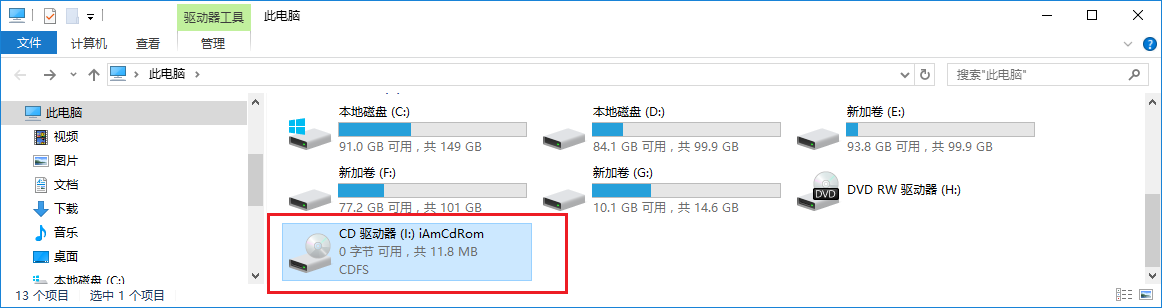 選中他之後,”我的電腦“是這樣的,多了一個“CD驅動器”: