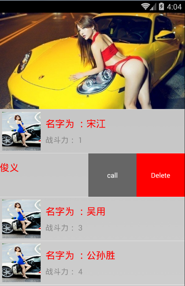 如圖所示是效果圖,當向下拉時,圖片會被拉出來,松手後恢復。和ListView的側滑刪除