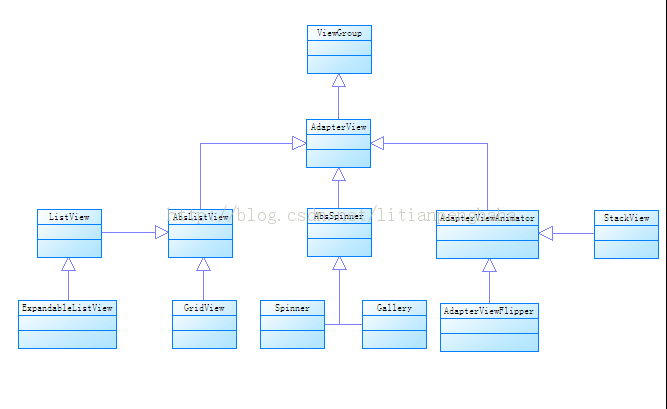 下面是AdapterView及其子類的繼承關系類圖:(圖從網上找的,有點模糊)