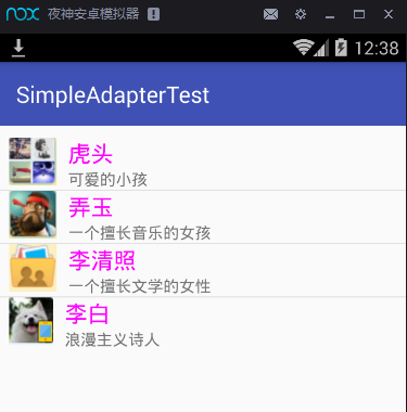 顯示的多個“列表項”由Adapter提供,調用AdapterView的setAdapter(Adapter)方法設置Adapter即可